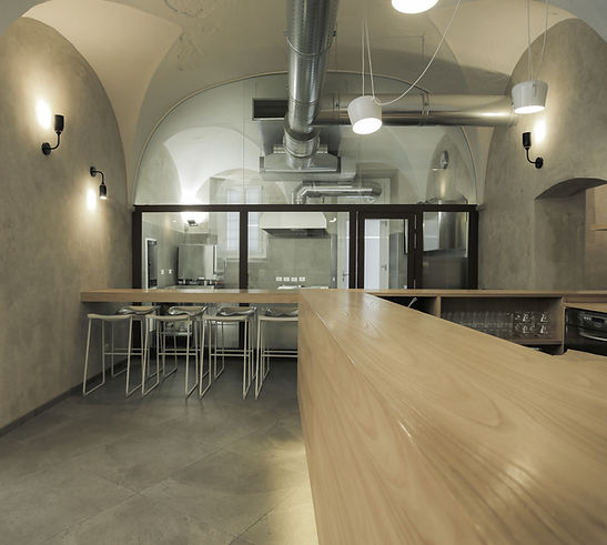 Principio cardine dell'approccio progettuale e' stato quello di rendere vita e dignita' ad un fondo desueto nel centro storico di Prato attraverso la riscoperta delle sue memorie storiche; le ampie volte a crociera e una colonna tardo medievale che silenziosamente, da sempre, sorveglia i locali.
